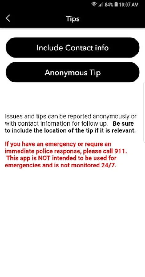 If you want to contact a specific division of the department, use our directory and contact that department directly. Or use the contact us portion of the app to contact the police department in general and you can contact school resource officers and make anonymous tips from the app. We would also love to hear about the positive experiences you have had with our officers so please let us know!