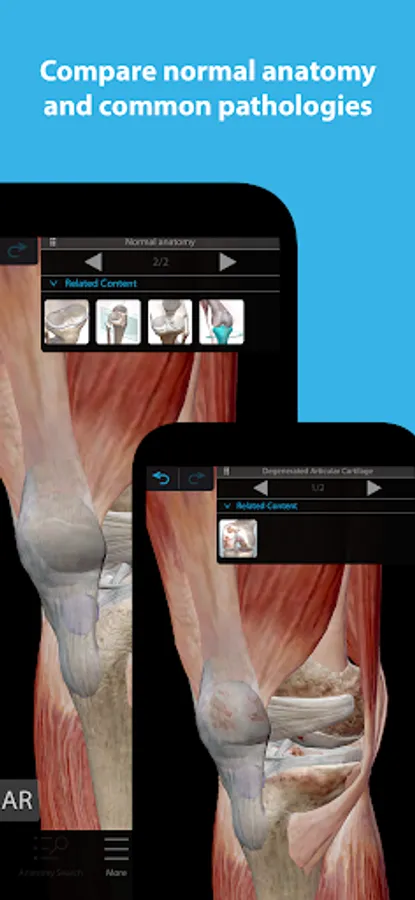 + Compare normal anatomy and common pathologies with dazzling 3D models of sprains, cervical radiculopathy, a torn meniscus, carpal tunnel syndrome, bone spurs, and many more.