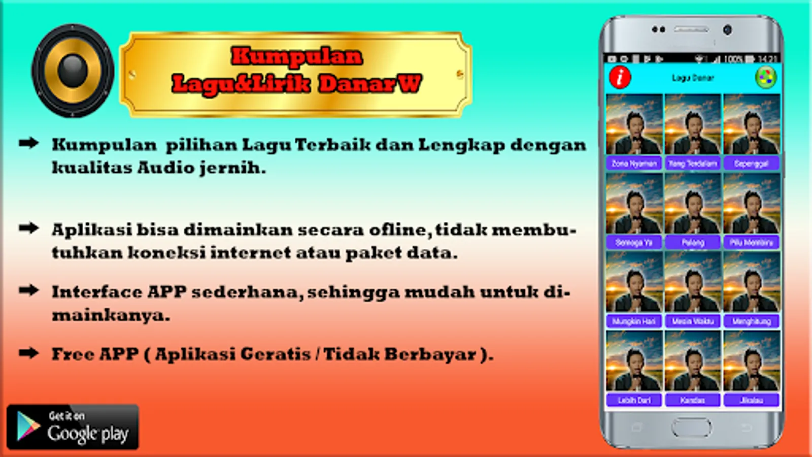 Including me as a fan of Danar, I want to give appreciation in an application, a collection of songs that have been sung by Danar.