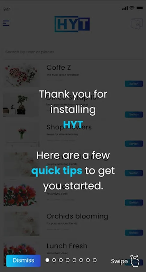 The Hytapp mobile application enables customers to engage in a mobile social environment that builds loyalty by connecting businesses to individuals. Users can purchase goods and services while building loyalty and enjoying discounts. Enjoy using the app to connect to your friends, business, and receive discounts as you shop.