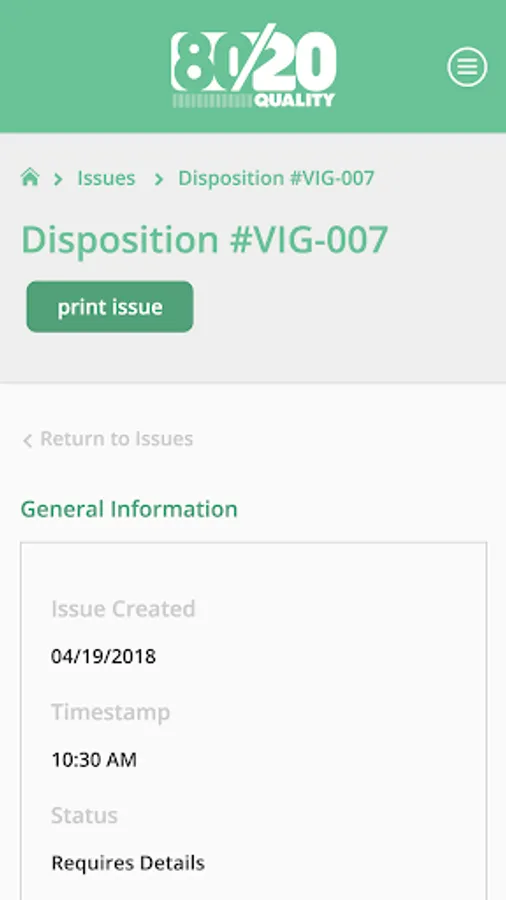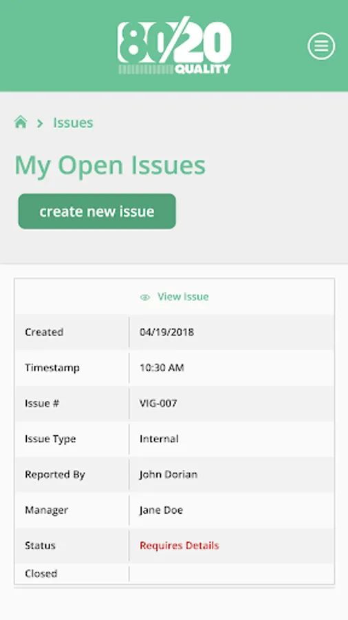 The 80/20 Quality App by CFA is an industry leader in tracking issues created from non-conforming materials within manufacturing settings. Designed to streamline the tracking process of vendor and material issues for manufacturing professionals, the 80/20 Quality app allows users to report material concerns and issues to their immediate supervisors in order to effectively develop corrective action plans moving forward.