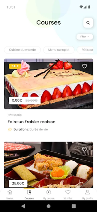Our video training courses are offered by professional Chefs and are accessible for life from your account (both from your application and from your member area on our website; your identifiers will be the same).
