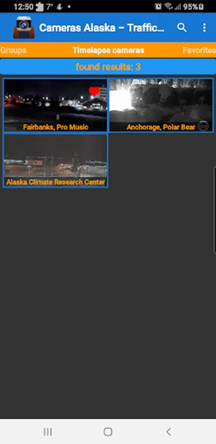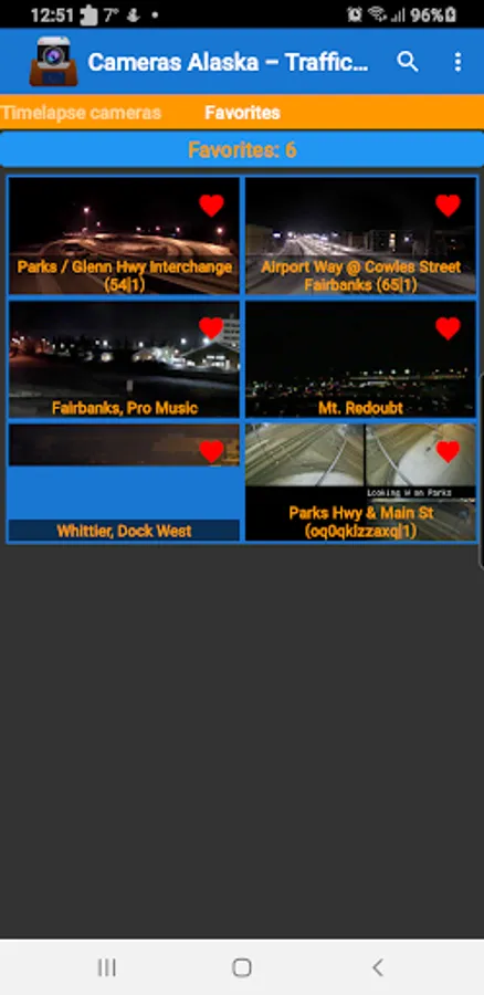 Cameras are grouped into categories for easy navigation, so you can quickly find the ones you need. From major highways and freeways to streets and roads, this app supports all kinds of locations throughout the state of Alaska.