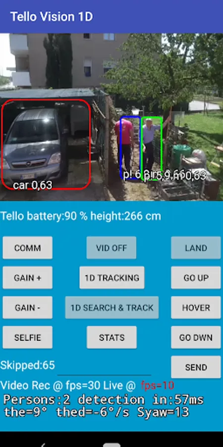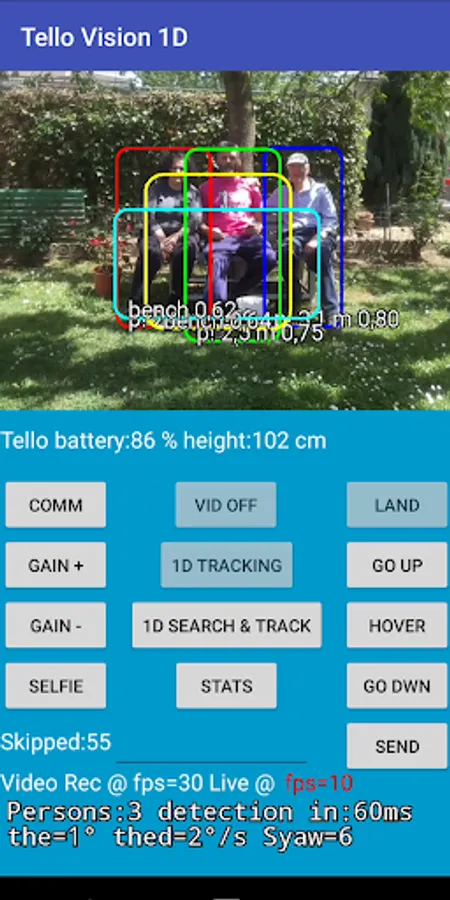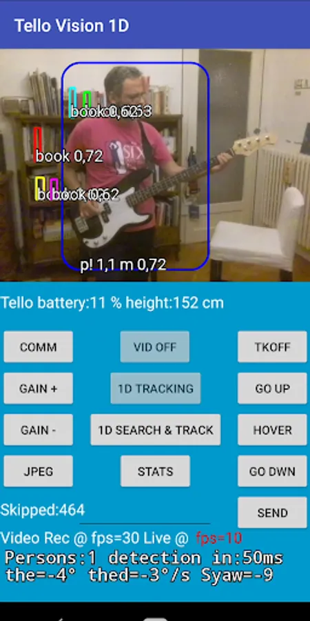 "Tello Vision 1D" allows 1D person tracking making Tello rotate as the detected person moves. It can even rotate to search for persons than follow them.