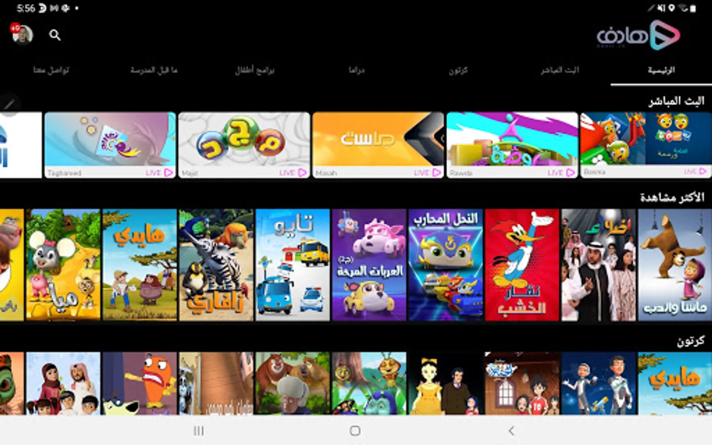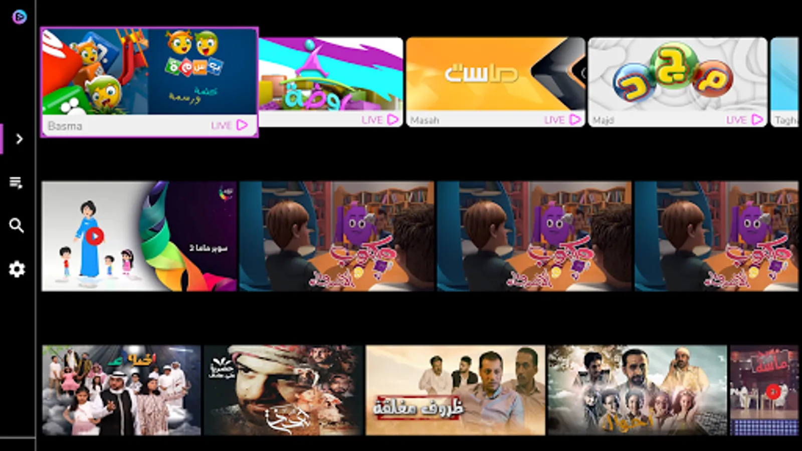 •Live broadcast of a group of conservative channels including Al Majd channels.