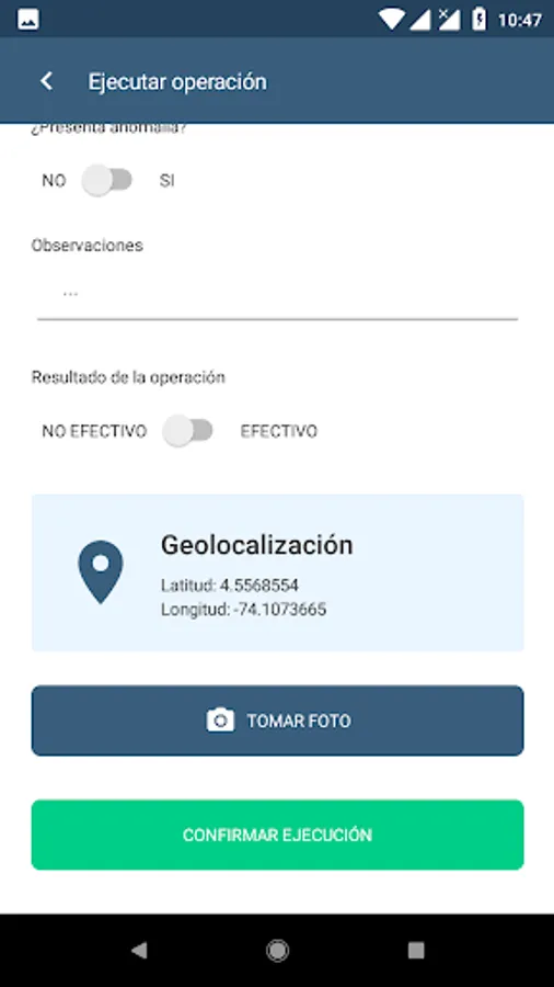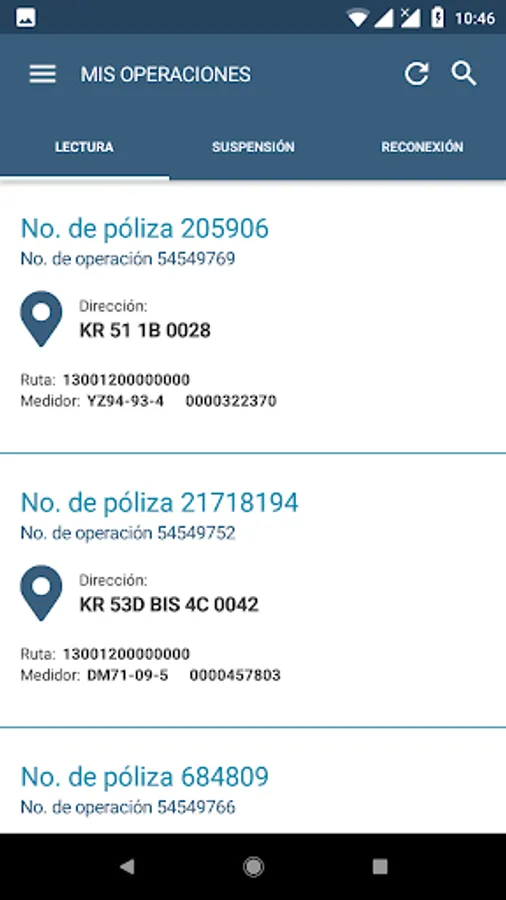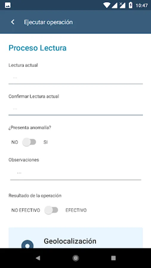 * Taking information of reading operations, suspension or reconnection in the field with consumption validation indicating effectiveness of the operation and / or anomalies presented.