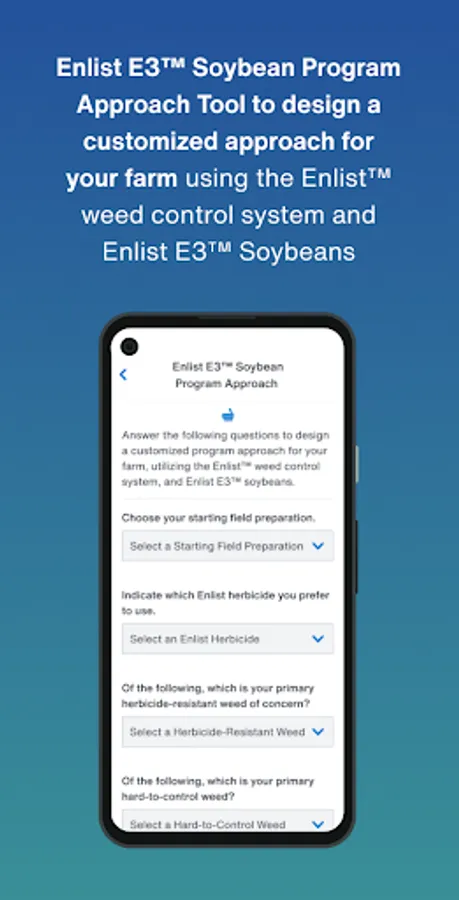 -Enlist E3™ Soybean Program Approach Tool to design a customized approach for your farm using the Enlist™ weed control system and Enlist E3™ soybeans.