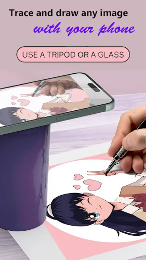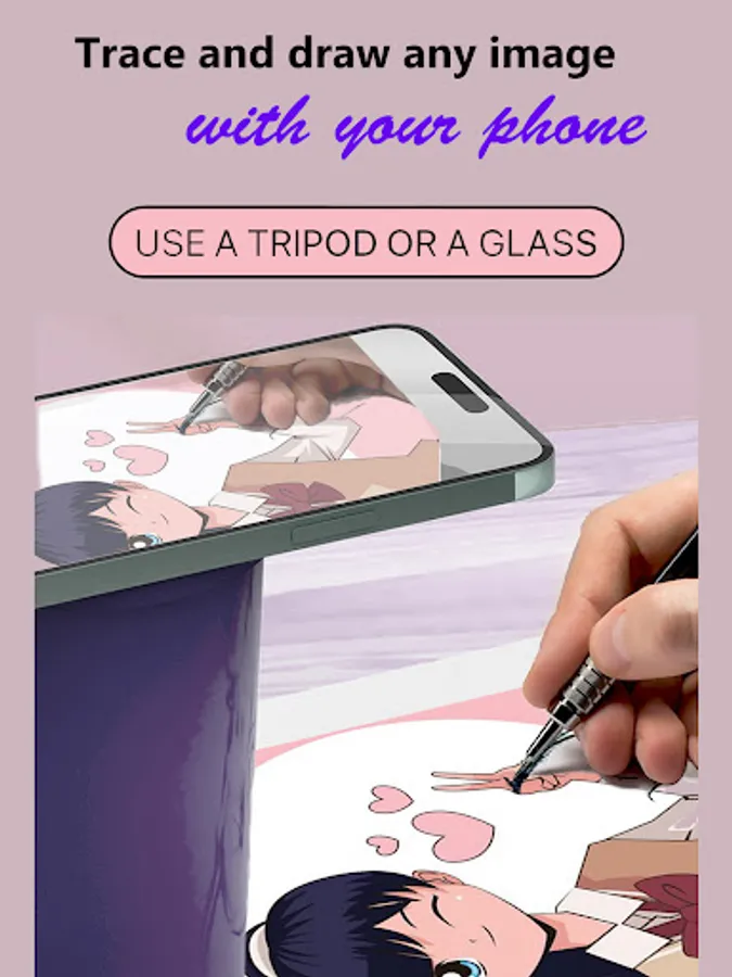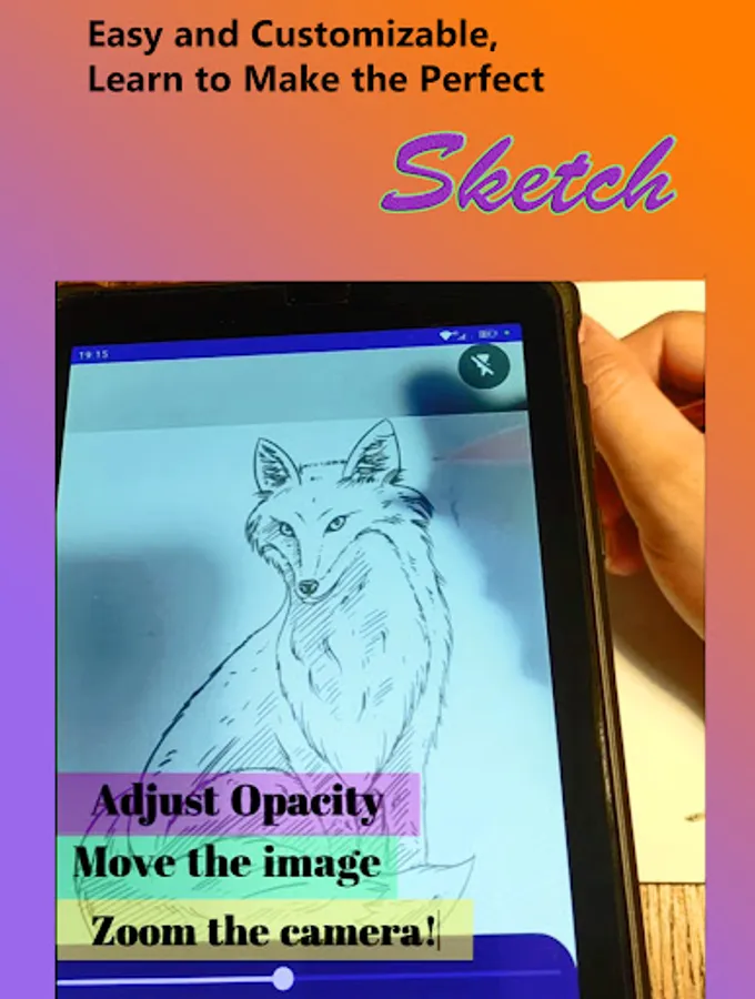 • Use your phone camera to draw, with our Augmented Reality (AR) you will see through the screen and adjust both zoom of the camera and of the image