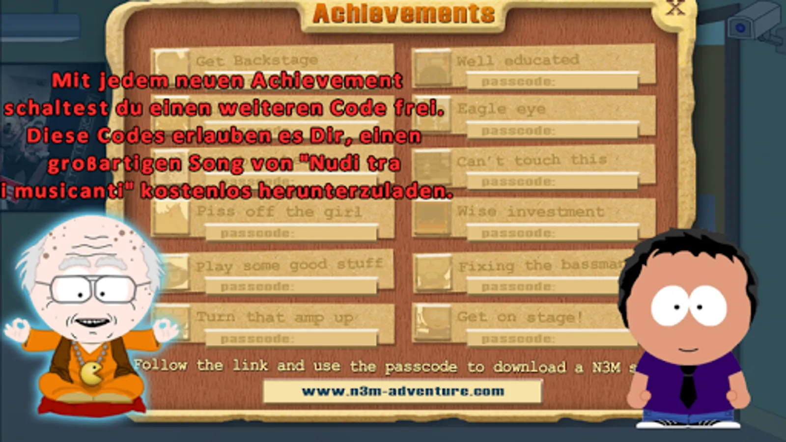 Oh, wait! Did we already mention the achievement system? Throughout the game you'll unlock several achievement codes that will allow you to download the songs from the latest "Nudi tra i Musicanti" album "More Than Naked" in mp3-format FOR FREE!