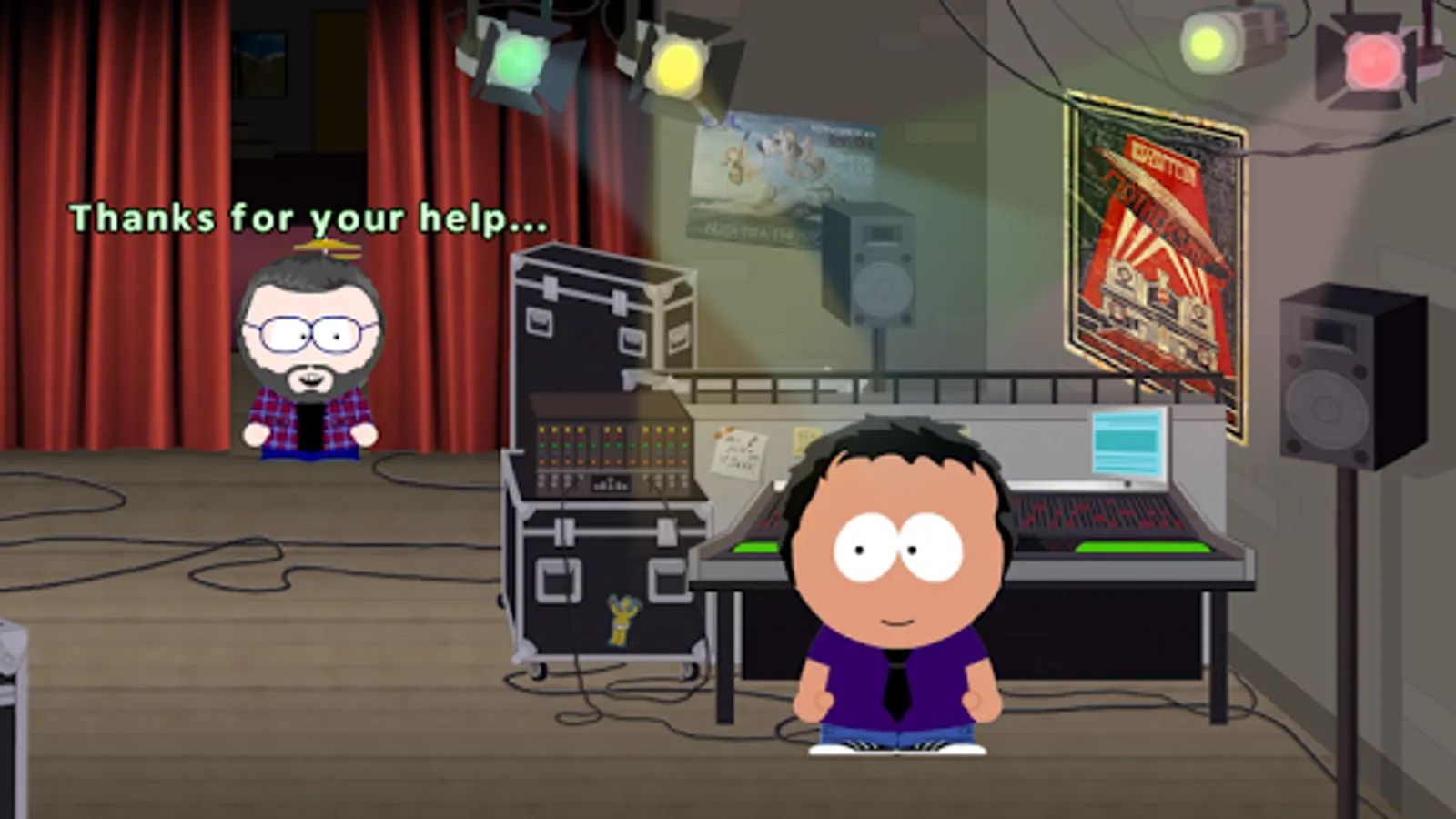 Or in other words, help a poor guy that, in the best adventure-game tradition, has to do all the dirty job while the others enjoy music, paint stupid cats or stalk not-so famous musicians that throw tantrums before getting on stage.