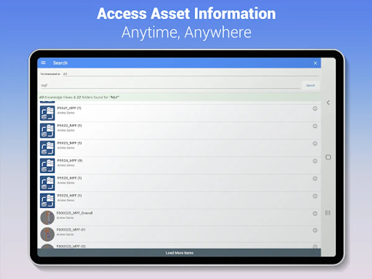 Knowledge Book is a mobile application that is part of a collection of V-Suite® products. The app allows you to access the asset information on your mobile phone, tablet or other mobile device. Assets are organized and presented to users in views called 'Knowledge Views'. You can navigate or search Knowledge Views and download them right to your mobile device.
