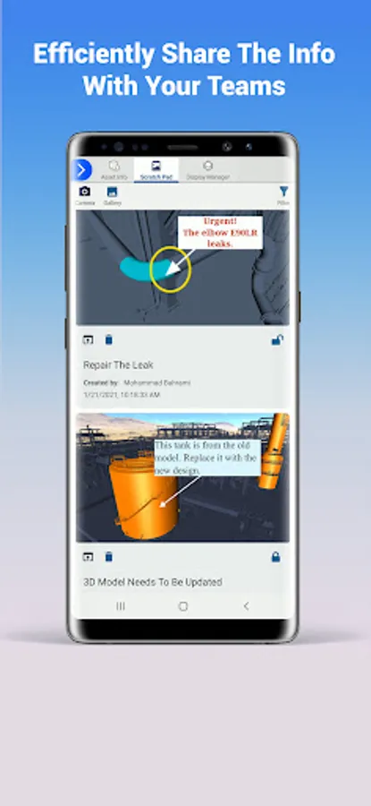 You can create and annotate ‘Scratch Pad’ pages of any 3D view to communicate field observations.