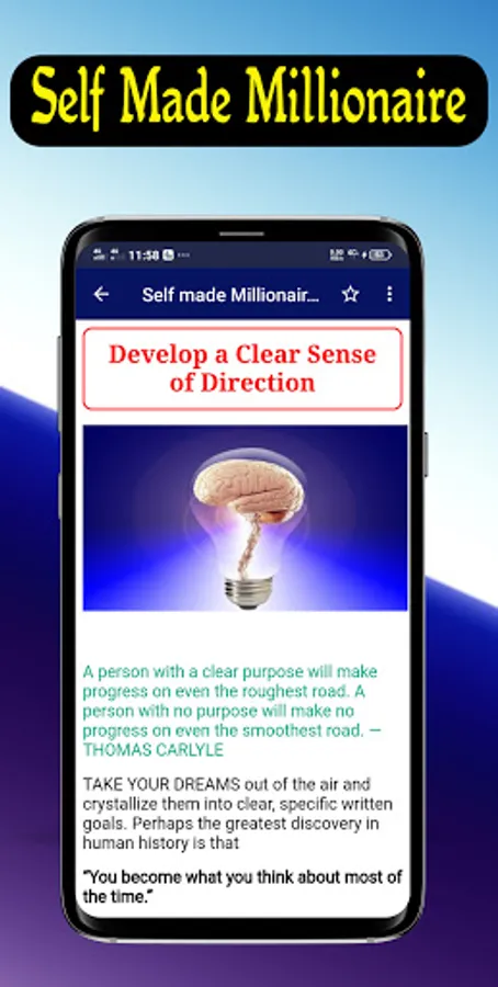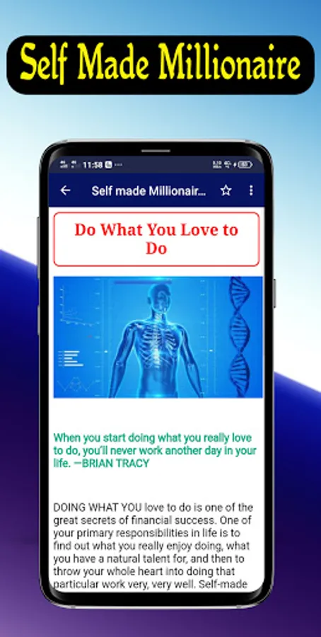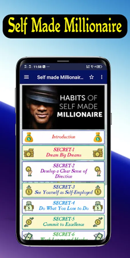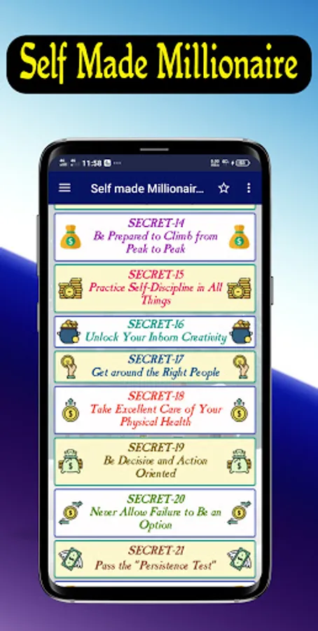 This app should be work as a changer for you which must self-help to you. This is the secret book designed with the secret scripture of success and eventually become a millionaire in life. Success people don't have a secret life but they are 100 percent change people from the general. They are self-made men.