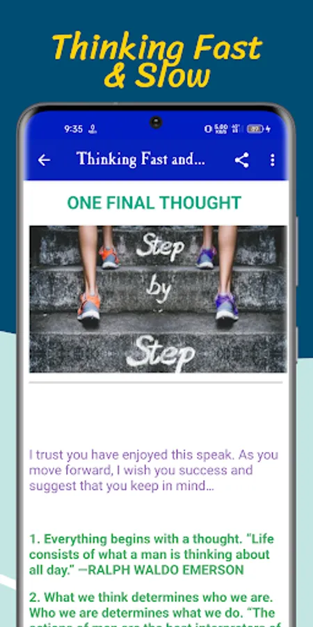 Thinking fast and slow app describes the fact of How successful people think and work and become successful in her/his life. So, thinking is the power to gain success in life. If anybody changes his/her thinking towards good thinking, ultimately he/she is changing his life.