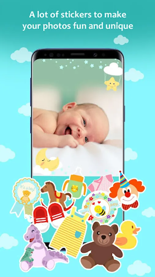 Baby Sticky is the ultimate app to customize your baby's pictures with texts and stickers, and it’s so easy to use!