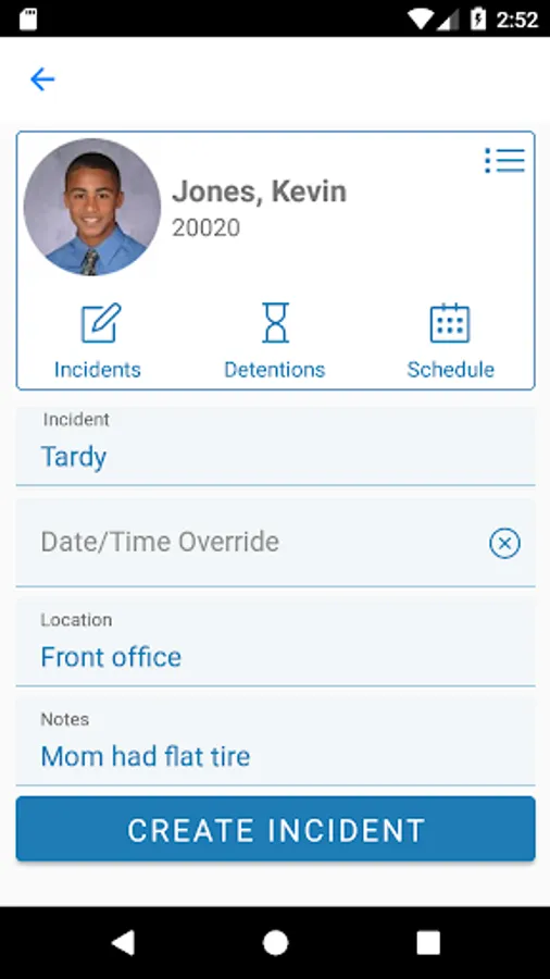 The “on-the-go” design of PerfectPass Mobile allows school administrators to quickly bring up a student’s information by scanning the student ID card, or by searching name and ID number. Results are displayed clearly and include the student’s photo, name, class schedule, recently assigned incidents and detentions, and school-defined custom data.