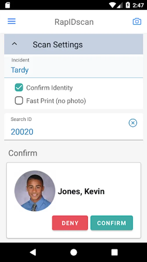 -Scan a student ID card using the camera or Nautiz X2 scanner or Zebra TC20 scanner