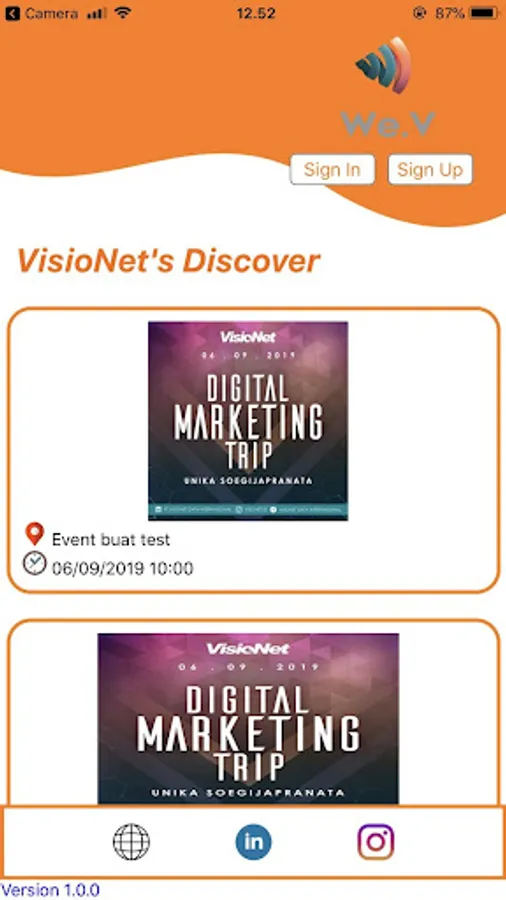The We.V Mobile application is an application to accommodate the VisioNet community that is outside the company. Like students and interns with the event function in it. Where every use can follow events that have been given by the company.