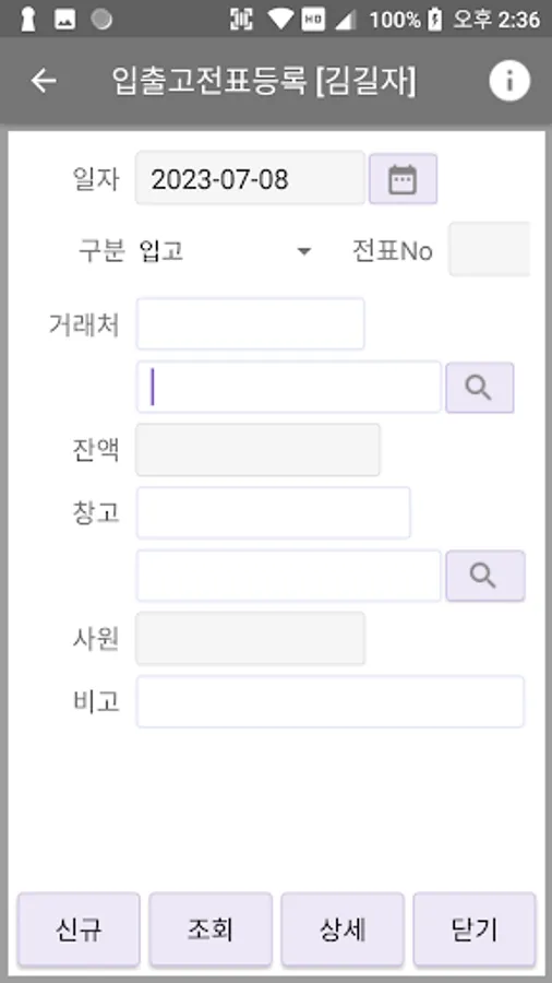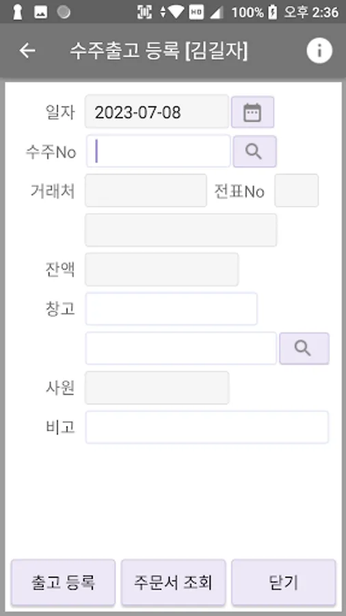 Receipt and payment management with PM85 PDA barcode processing system (order filing, entry/exit slip registration and inquiry)
