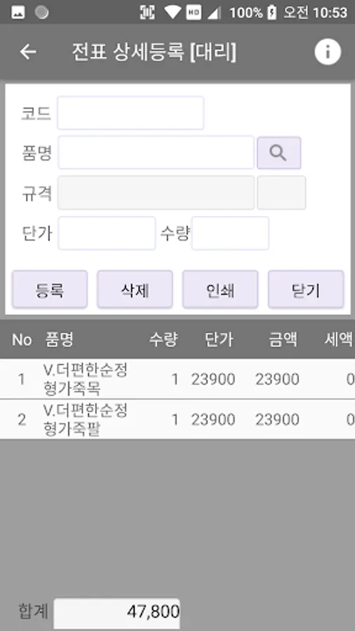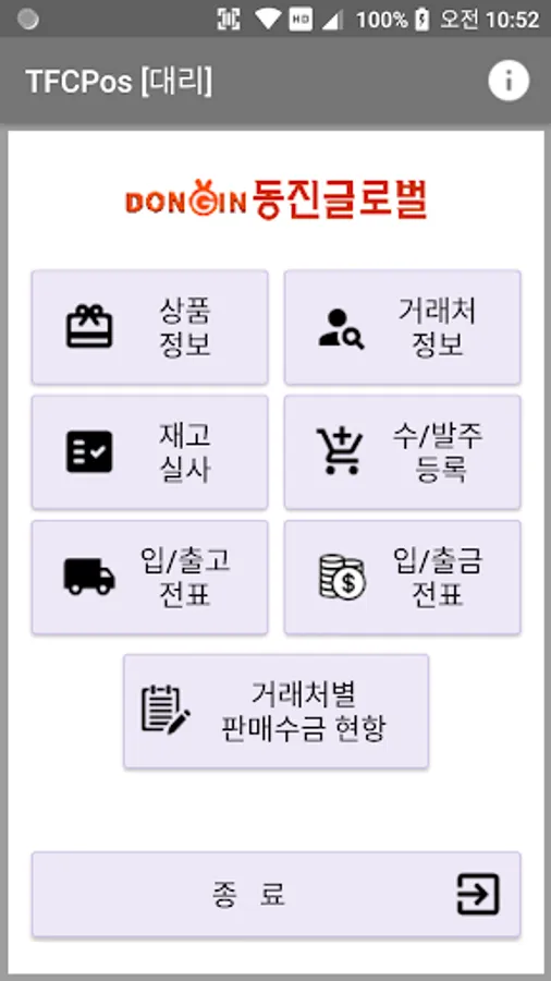 Item search, customer search, barcode, warehousing, delivery, ordering, sales collection status inquiry, Bluetooth-connected printer output, receipt issuance, etc.