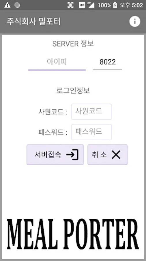밀포터를 위한 육각공 업체를 위한 현장 단말기용 Pop 프로그램입니다.