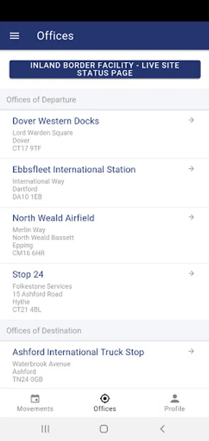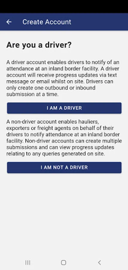 Use of this app whilst driving is illegal – it should only be used before commencing your journey or once parked up at an inland border facility.