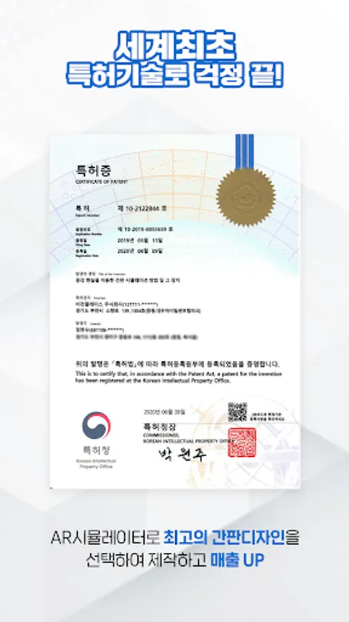 : The only way in the world to develop a sign simulation method and device using AR (augmented reality) technology, was certified as a patent, and its excellent skills were recognized!