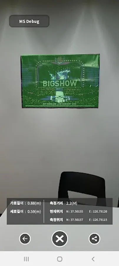 When the subject you want to measure is aligned with the square frame, the horizontal and vertical lengths are displayed on the screen.