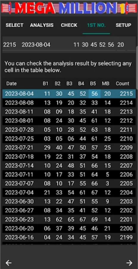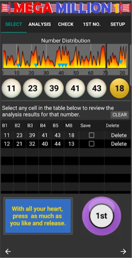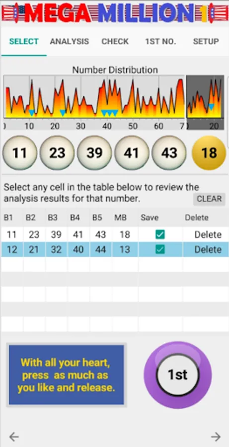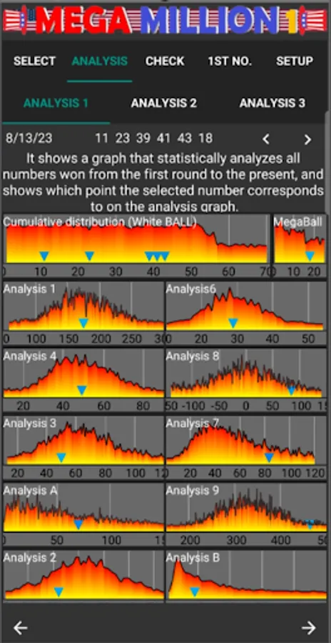 It provides a graph that statistically analyzes the first prize data from the 1st MegaMillion to the present, and shows where the number I selected corresponds to on the graph.