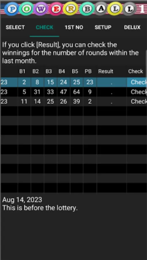- Provides the ability to automatically generate PowerBall numbers and confirm winnings.