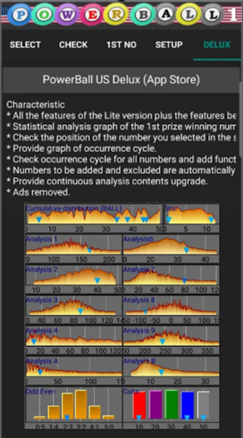 - The deluxe version offers more features. (number recommendation based on statistical data analysis and number cycle analysis)