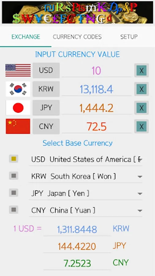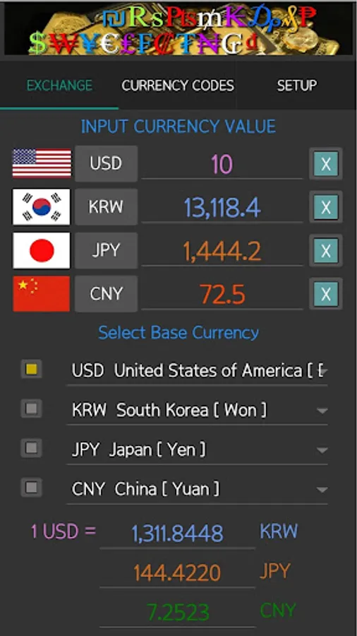 - If you select 4 countries and enter the amount in the country you want, you can immediately check the current exchange rates of 4 countries at the same time.