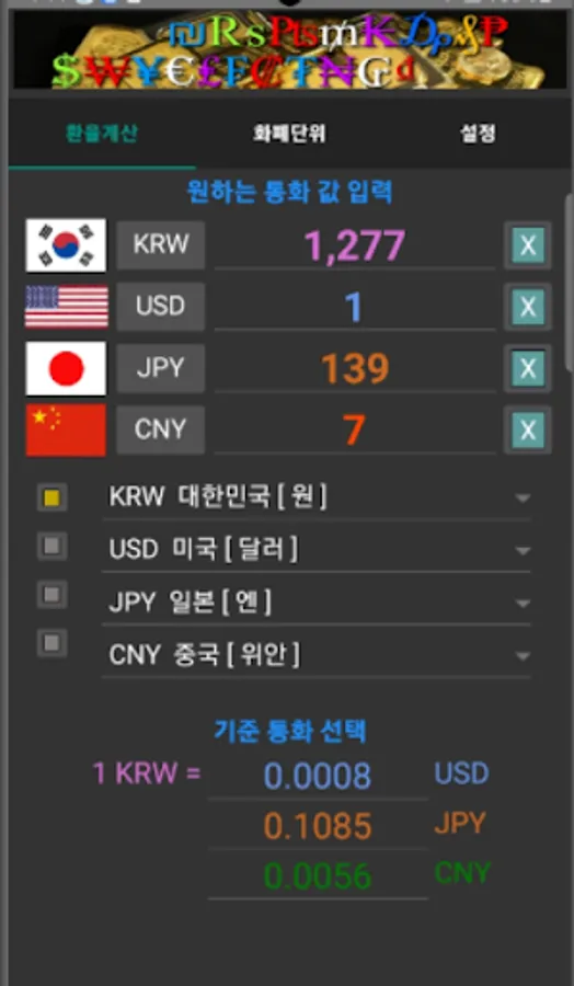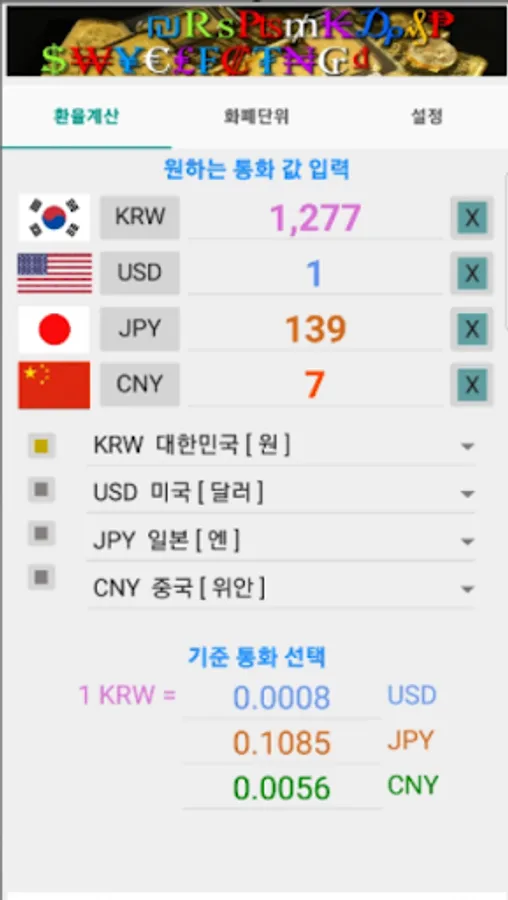 If you select 4 countries, you can quickly and easily calculate the exchange rate right away.