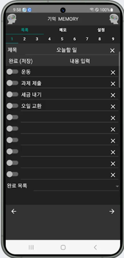 Completed items are automatically saved, and you can recall and use the same item again later.