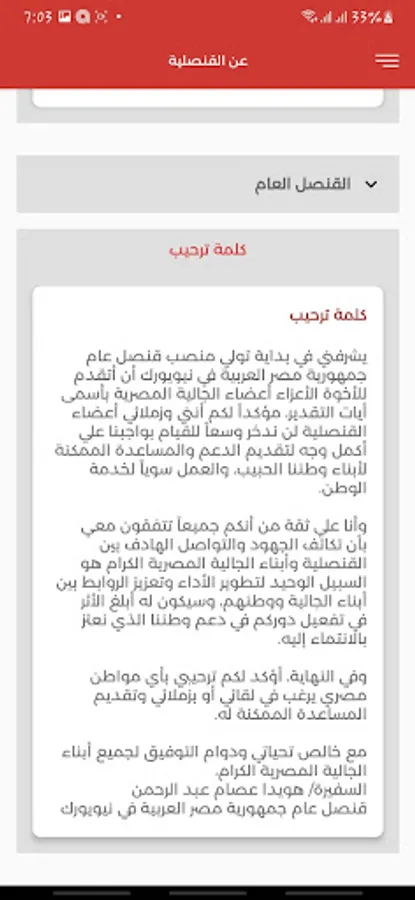 Since its establishment on December 2, 1971, the Egyptian Embassy has been following the principle of promoting security, peace and sustainable development in various parts of the region and the world, taking this principle as a fundamental dimension in Egypt's Arab foreign policy.