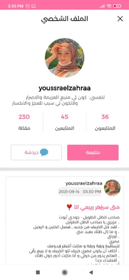 My library is a large community 👬🏻👭🏻👭🏻👬🏻 in which you can express ideas and publish your interests and find encouragement if you have a talent for writing or poetry, and this is through the article writing service and the message service