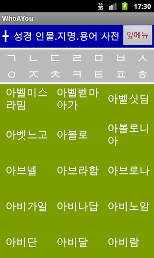 Many Korean characters and place names with more than 2000 words are organized in alphabetical order.