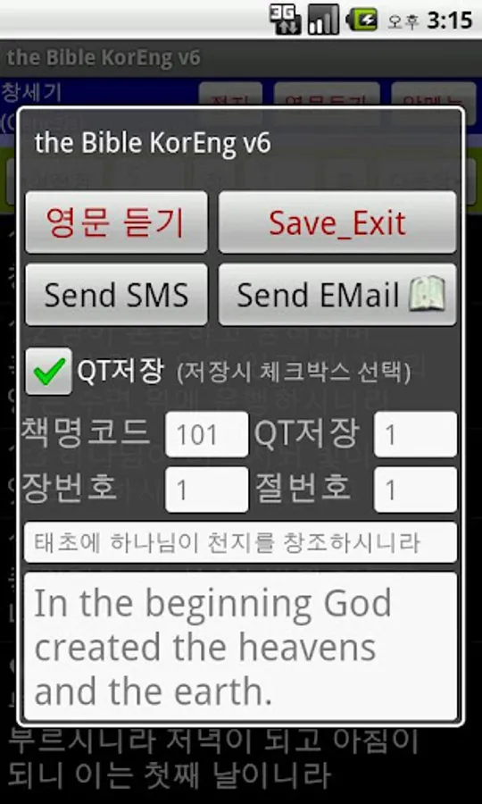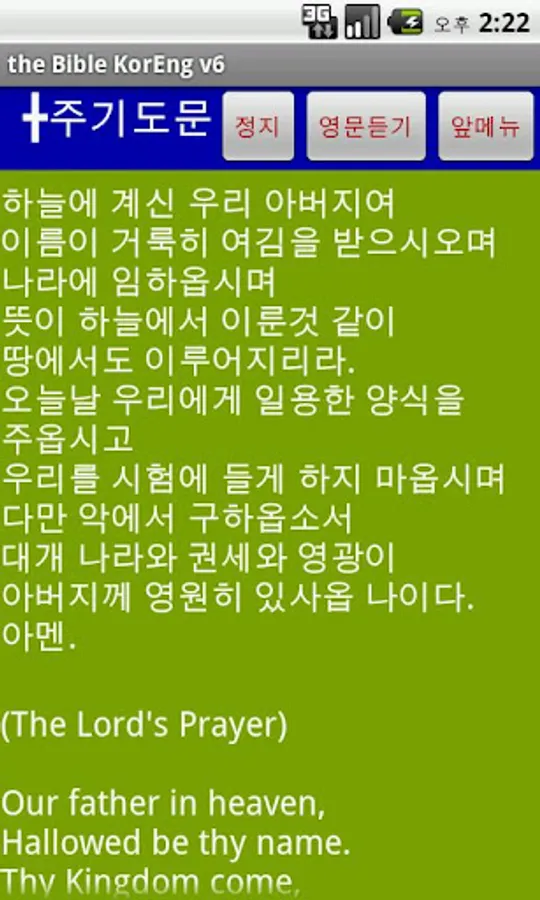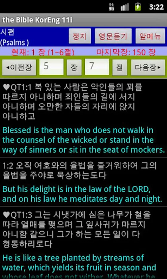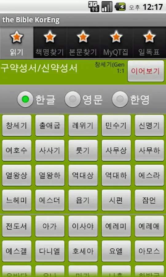 66 books of the Bible (the Old Testament, the New Testament 39 and 27), a professional can be read from the user to select the desired part. Specifically, Hangul / English / Korean-English, etc. You can select from three types.