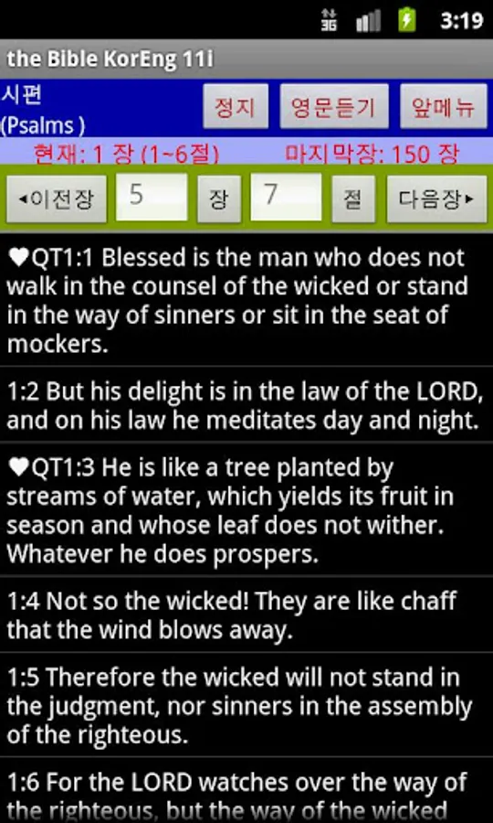 Hangul / English / Korean-English Bible, Bible search, MyQT home, Resume and bookmarks,