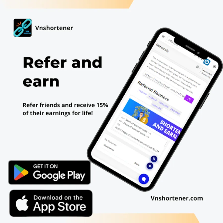 The Vnshortener referral program is a great way to spread the word of this great service and to earn even more money with your short links! Refer friends and receive 15% of their earnings for life!