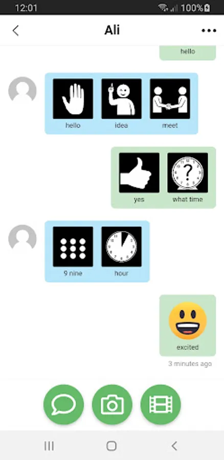 A message consists of up to six pictograms. A message with pictogramsis read aloud when you touch it.
