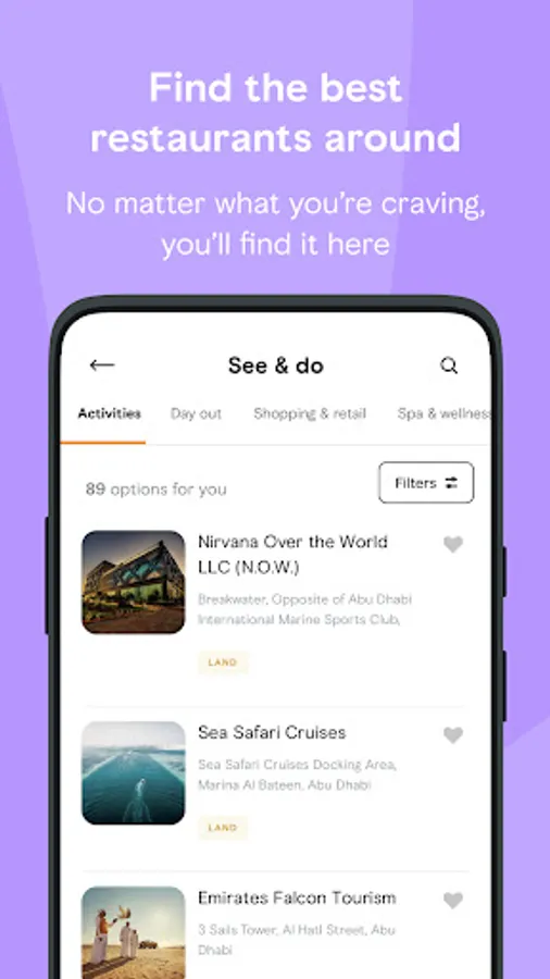 • Full listings of hotels, restaurants, spas and nail salons with filters to find what’s best for you