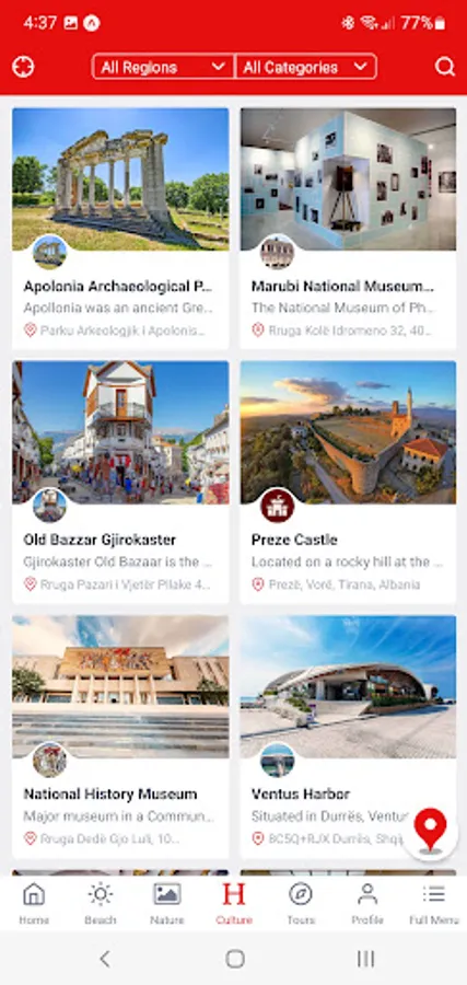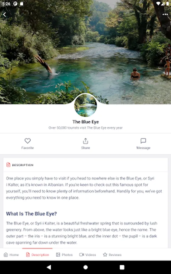 Visit Albania app offers a complete guide about all the places worth visiting in Albania, containing over 160 different places. Each entry, has detailed info about what it has to offer, including reviews from past visitors, image gallery, and Google map location to drive you right there.