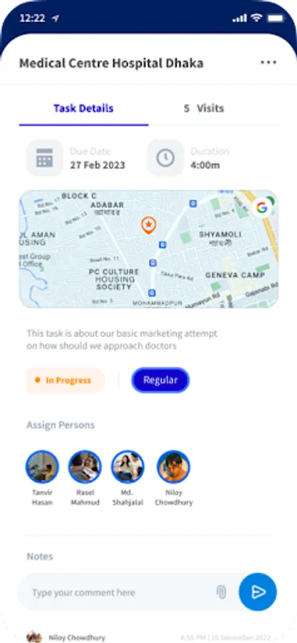 🚩A Field Visit Tracker app is a mobile application designed to help organizations keep track of and manage their field visits. This app allows field workers to easily log their visits, update their status, and communicate with the office in real-time.