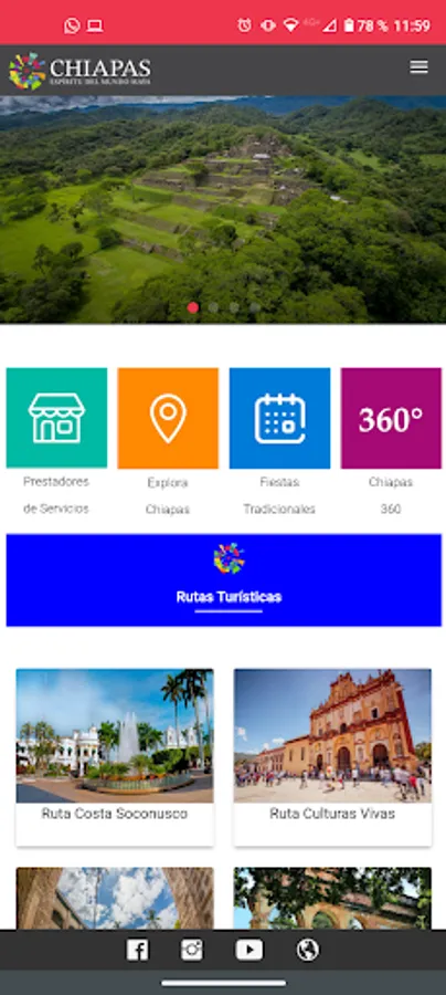 Find the best places and places that Chiapas has for you. Navigate the state the easy way. Get to know its nature, culture, customs, festivals and gastronomy. Discover its main destinations for your next visit and embark on the seven routes that run through it: Maya, Dos Chiapas, Province of the Zoques, Costa Soconusco, Haciendas, Culturas Vivas and Camino Real.