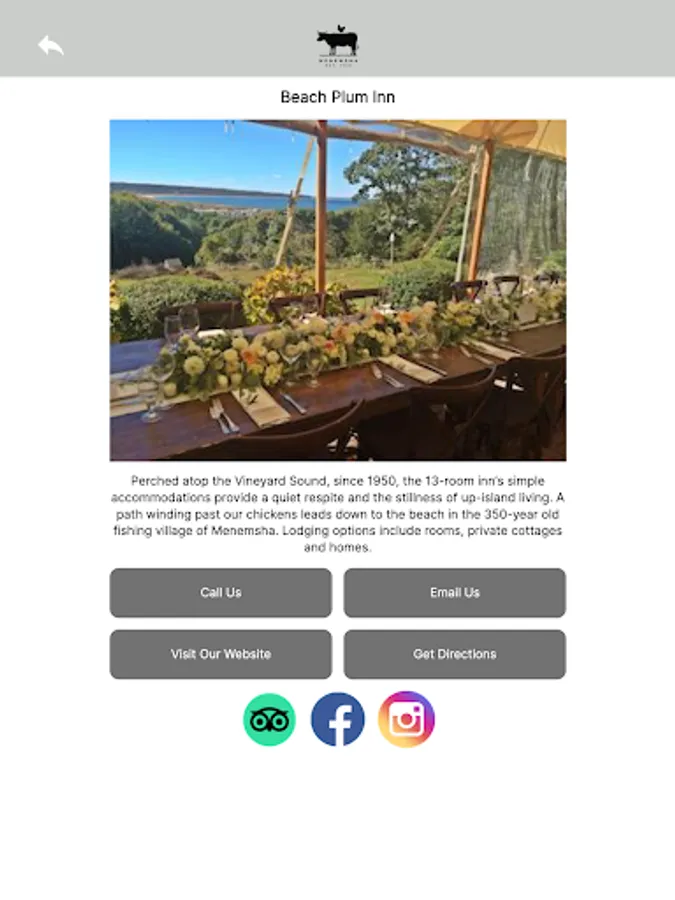The Visit Martha's Vineyard Now app is a digital companion of the Visit Martha's Vineyard Magazine, an in-room magazine found in a majority of hotels, motels and inns throughout the island. The magazine is published by North South Net, Inc. This high-end publication features an abundance of local arts, culture, restaurants, shopping and activities. Fanatics tips on what to do and where to go. The Visit Martha's Vineyard Now app brings all of the features together on your phone for easy access and use as well as direct communication with vendors and attractions listed in the app. You can call and browse menus, make reservations, book tickets directly to attractions or activities and never get lost using the get directions button.