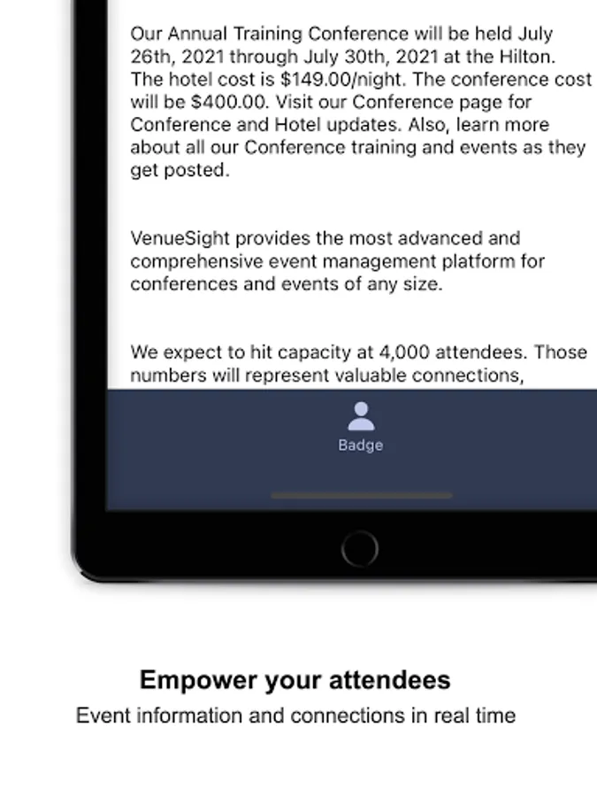 With VenueSight Mobile, you'll have all the information you need to make the most of your conference experience.
