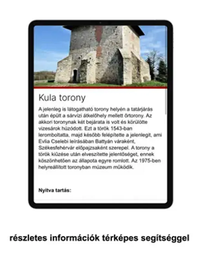 In addition, our digital exhibition guide application enables independent exploration of Szabadbattyán and its surroundings, during which you can learn about its hidden interesting points and attractions. With the help of our map navigation module, visitors can be informed using GPS or even QR codes. All interesting things that the settlement wants to present can be found in a separate menu, helping to present local values and
