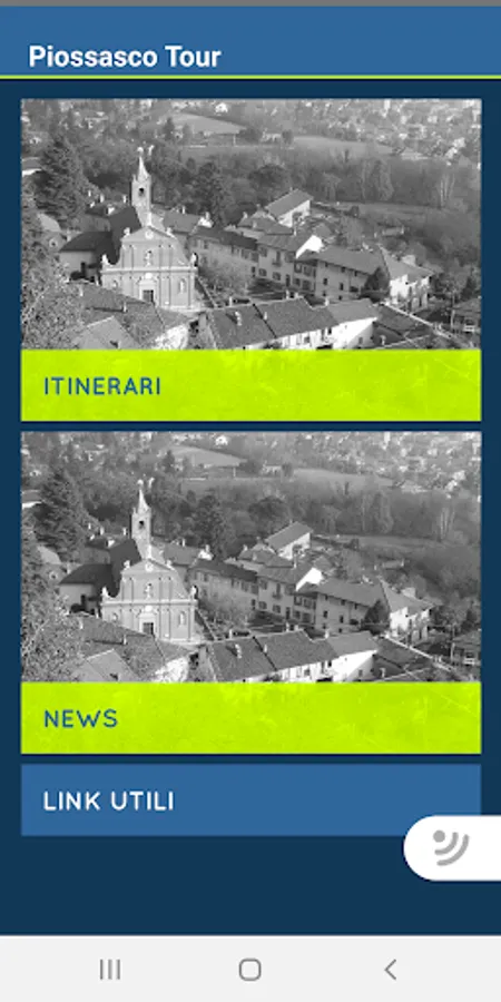The application to learn about the territory of Piossasco through the itineraries of: