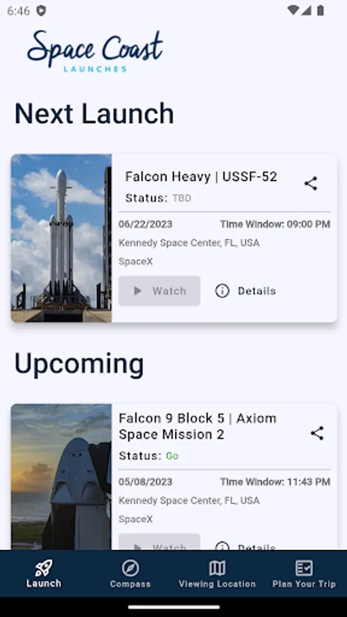 - Receive notifications for upcoming launches 24 hours and 5 minutes before countdown.